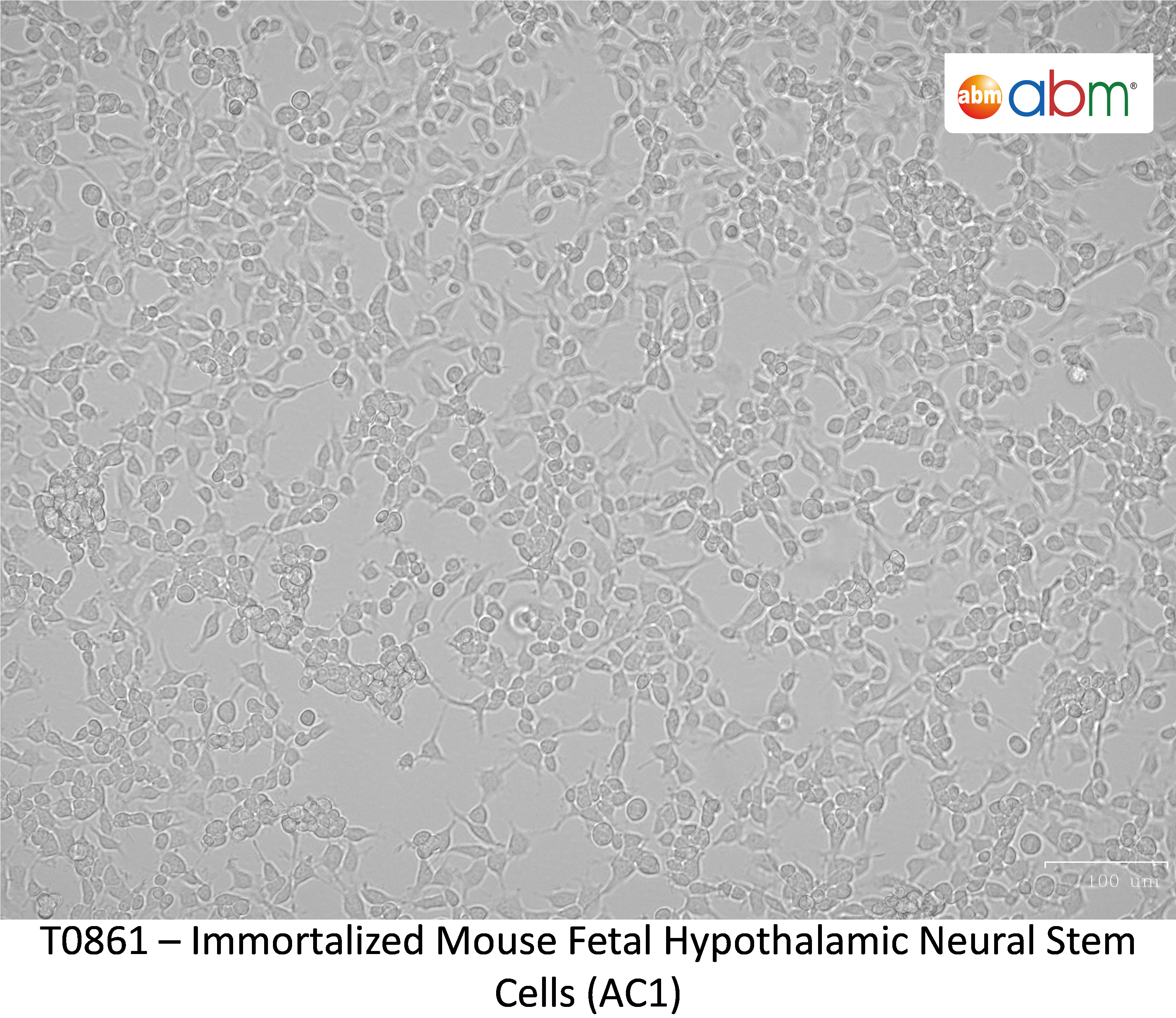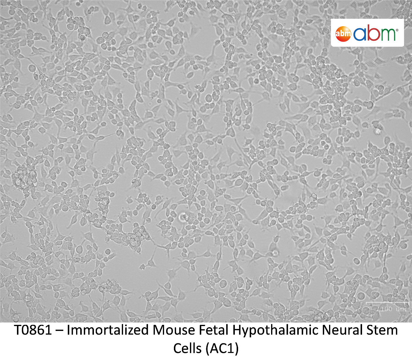 Cells were derived from hypothalamic region of E14.5 mouse brain and has been propagated for at least 25 passages (more than 100 duplications). The cells maintain high neurogenic potential and can generate neuronal cells expressing some hypothalamic peptides. Useful tool to investigate in vitro the mechanisms possibly involved in development, differentiation, and fate of hypothalamic neurons with neuroendocrine features. |